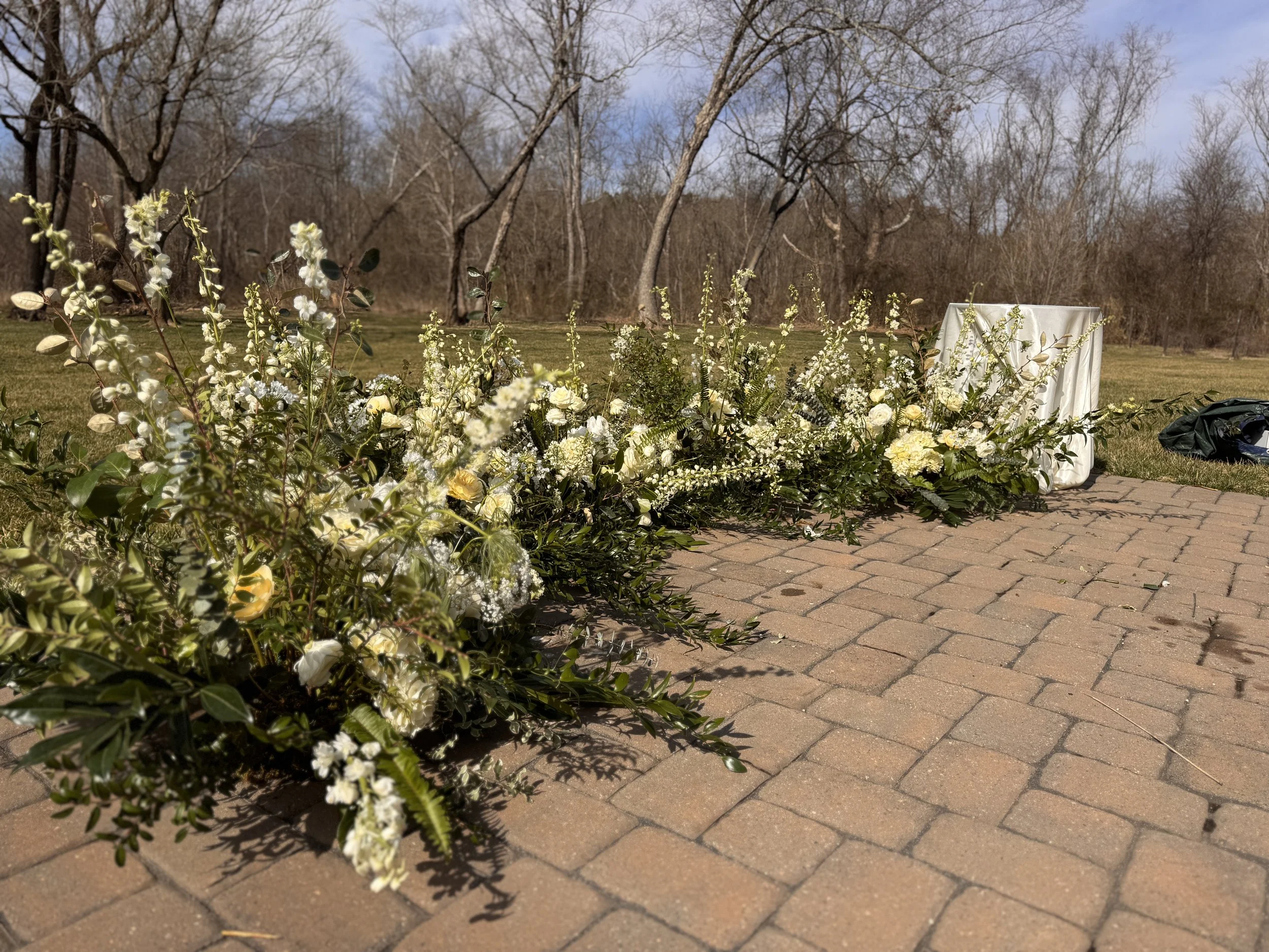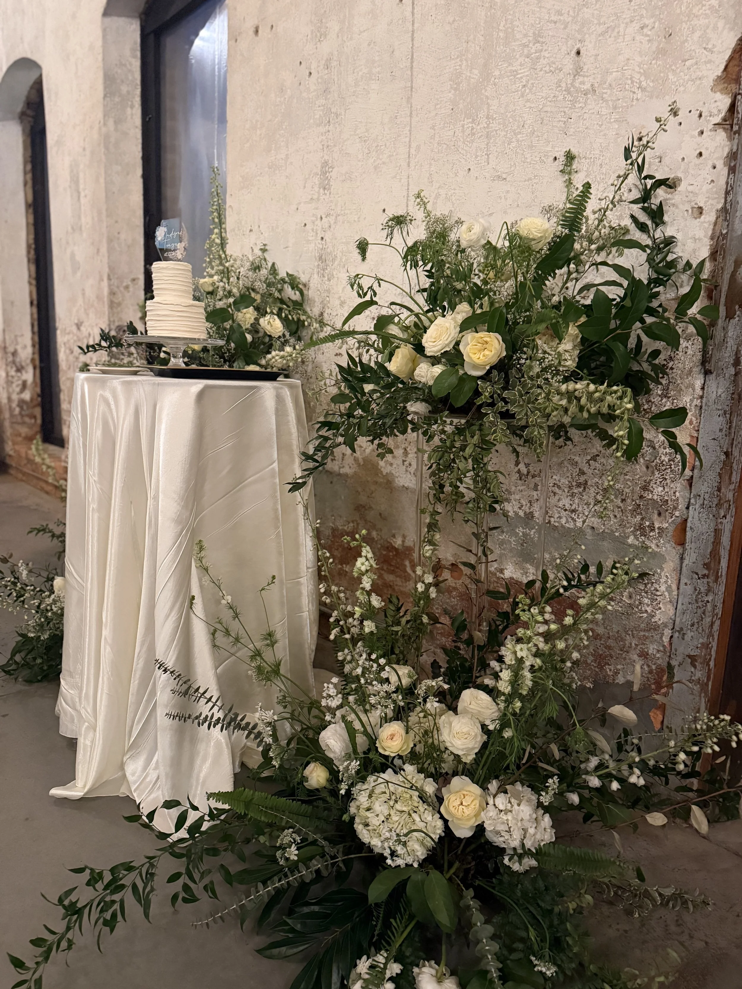 Lush and abundant with florals of whites & greens that create a luxurious look. Clouds of babies breath mixed with white hydrangeas to ground the arrangements.
